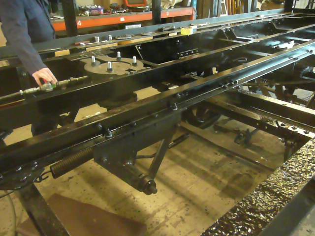 Da der Kohlen- und der Wasserkastenrahmen auf der Heizerseite der Lok miteinander nur an 4 Schraub- / Nietpunkten verbunden sind und bei korrekter Positionierung bzw Ausrichtung unter größerer Vorspannung stehen, müssen zum Nieten die Lagen der Anschlusspunkte fixiert werden.