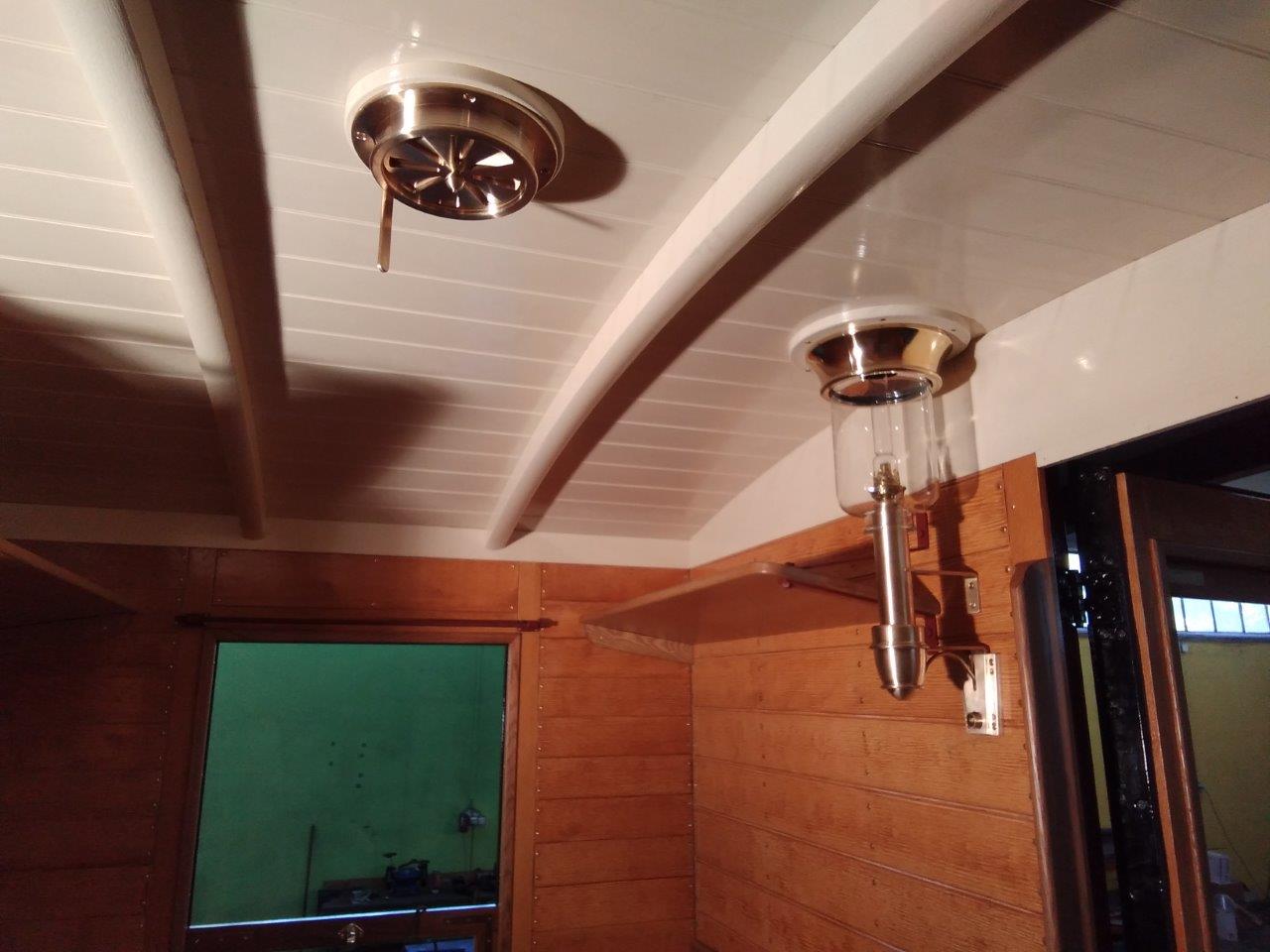 Innen sind die Eichen-Ringe für die Lampenhalter und Lüftungsschieber angepasst worden und werden jetzt in der Tischlerei lackiert.